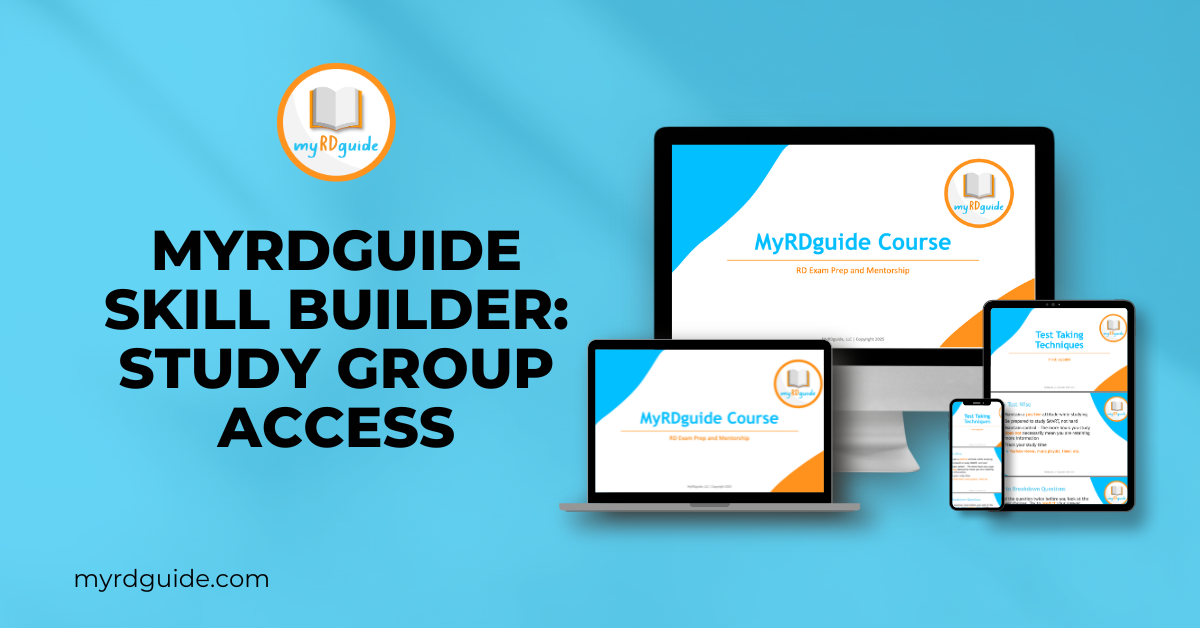 Our live Study Group sessions are designed for Q&A and group discussion on any RD exam topic. Each session runs ~45 minutes twice per week and gives you a focused, step-by-step path to master multiple high-yield areas fast.
