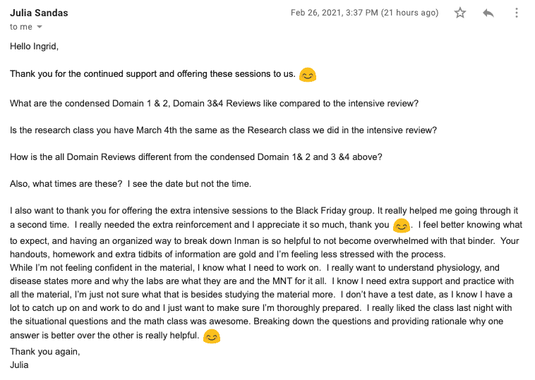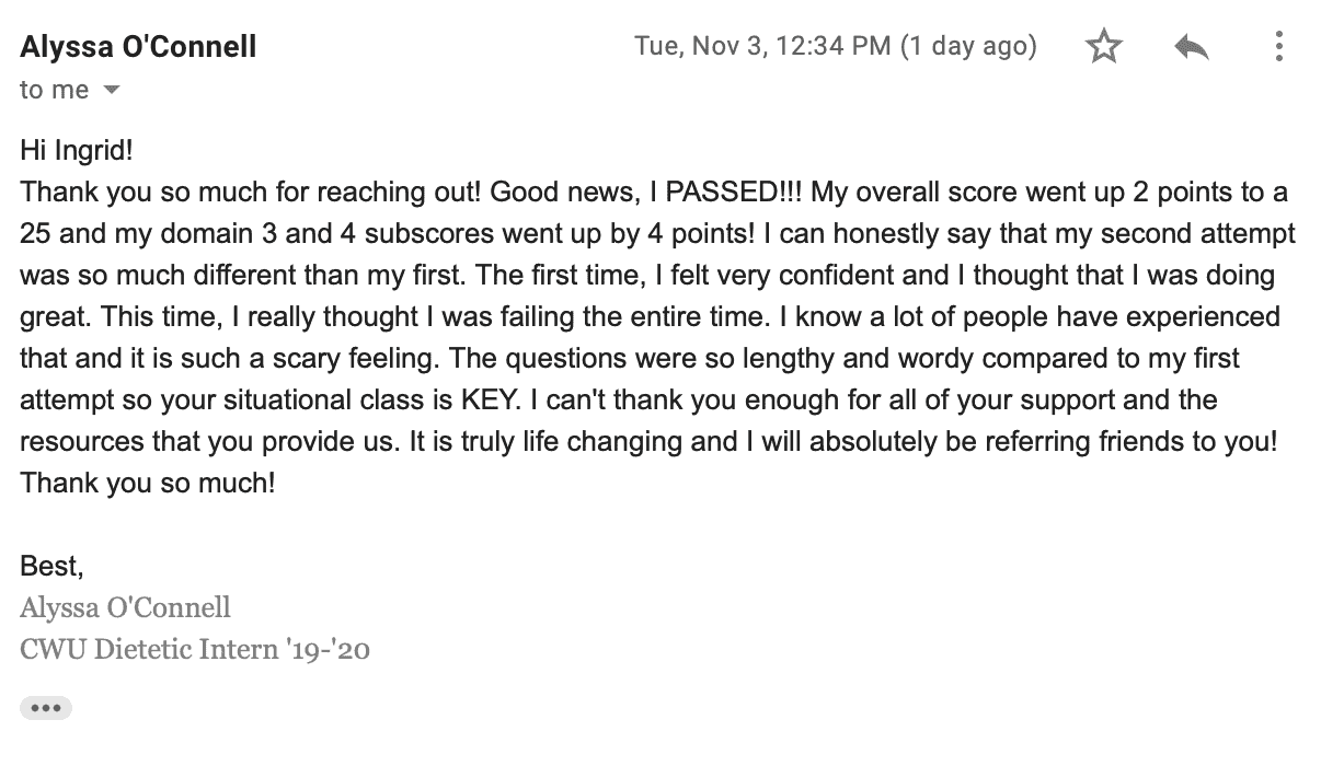 The Intensive Review is a structured, high-yield live review designed to reinforce key concepts, strengthen critical thinking, and help students confidently apply material across all RD exam domains.